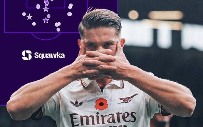 本赛季射门20+的英超球员中,只有哲凯赖什的射门全在禁区内