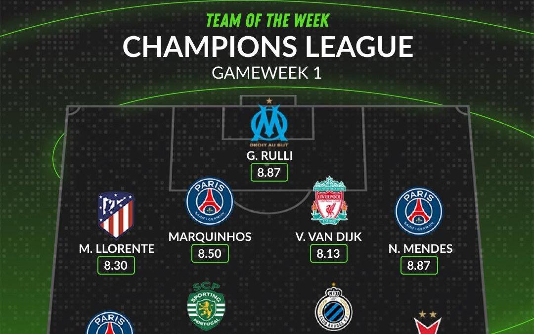 英媒评欧冠首轮最佳阵容,凯恩、姆总领衔锋线,巴黎三人在榜