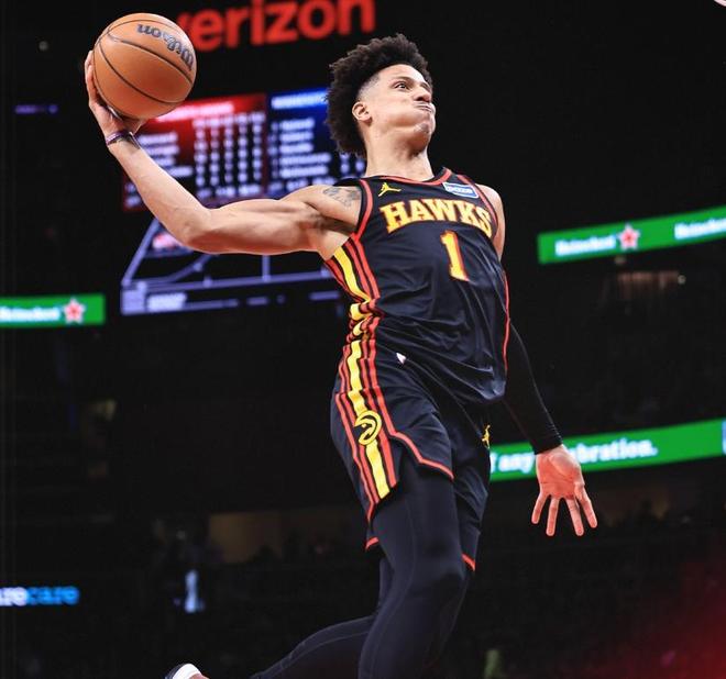重新回到赛场之后,杰伦约翰逊在个人进攻方面,依旧没有展现出侵略性,四节战罢,只有9次出手命中4球的发挥,虽然也交出了12分、11个篮板、6次助攻的全面个人数据,但得分远没有达到赛季平均水平,还出现了6次的失误。